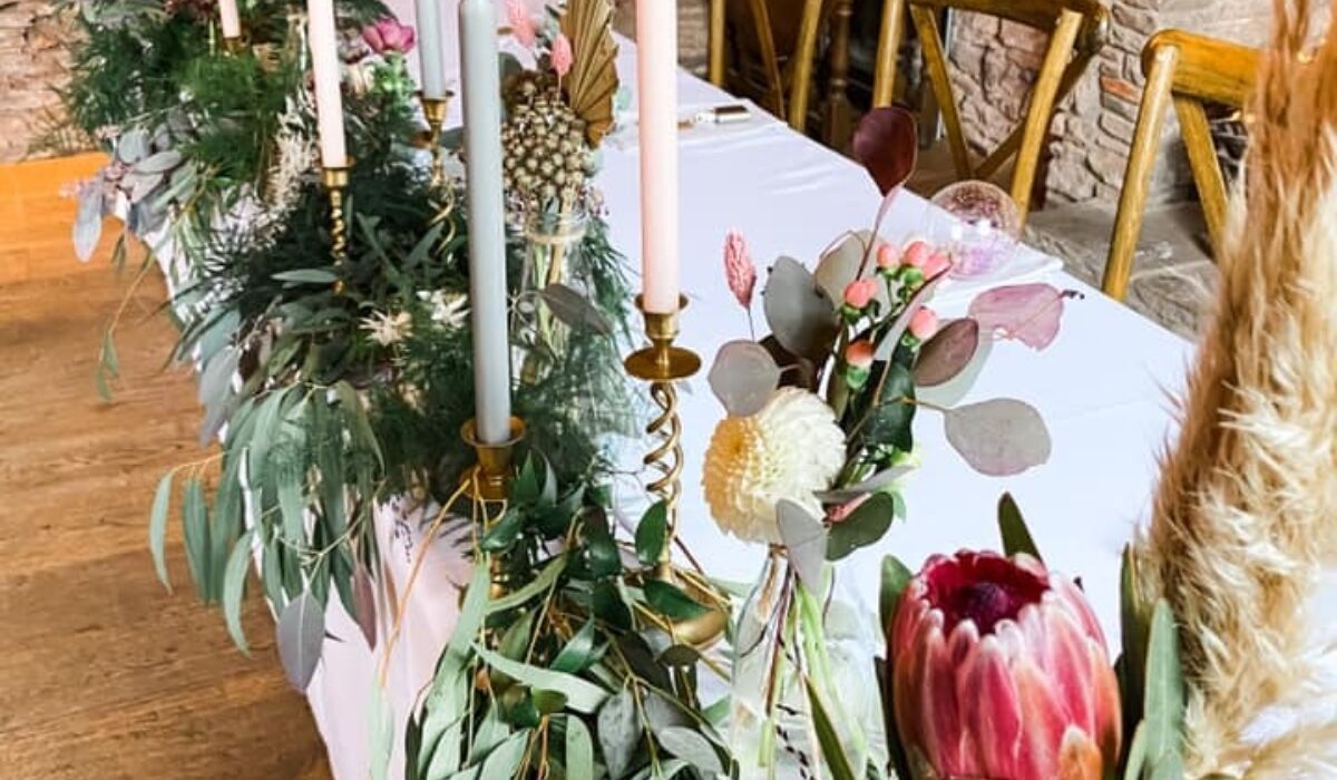Emma and Craig were one of the first couples to book their wedding with me back in January 2019! They came to me off the back of a recommendation which is always nice and I loved our initial wedding flower consultation together as Emma has a real love and passion for flowers. Craig was there to keep an eye on her spending as I think if she could she would have filled the whole wedding with flowers... which I would have loved! We got a beautiful plan in place for her church and rustic pub reception and they booked me straight away. Emma loved autumnal flowers just like me and wanted her colour scheme to be autumnal pinks. The flower collection would include; roses, protea, lisianthus, anemone, ranunculus, dahlias along with some dried stems to create that bohemian feel.