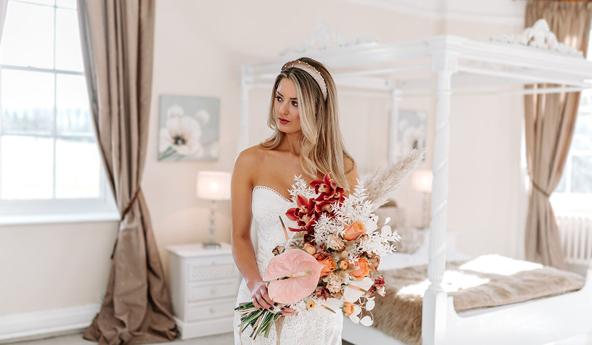 I love to get involved in styled wedding shoots as I get the chance to let my creativity run away with me in the hope to inspire future brides and grooms. The lovely Sophie from Sophie Wylie Make Up asked me to design the florals for her shoot at the gorgeous Eastington Park in Gloucestershire. It is always great to work with, support and get to know local wedding suppliers who also run small independent business like me. Also involved with the shoot were fellow south west wedding suppliers; photographer; Hana Dallimore, hair stylist; Stacey Jade, dress boutique; The Mews Bridal and accessories brand; Kontes London.