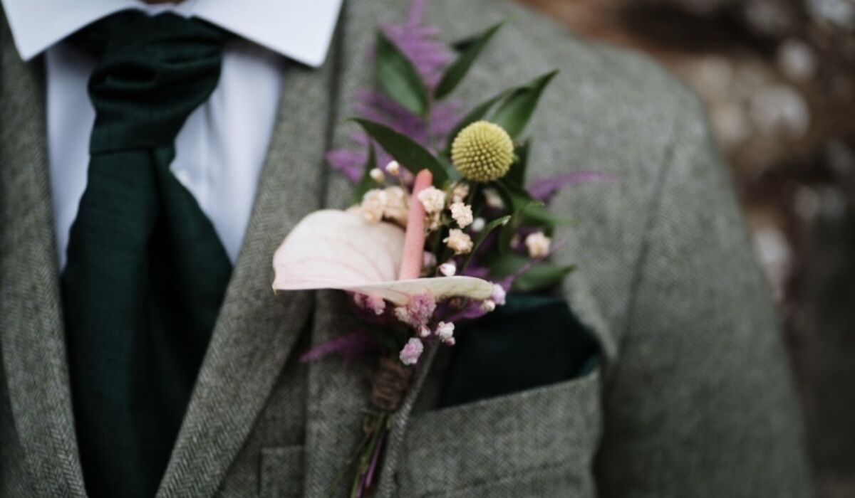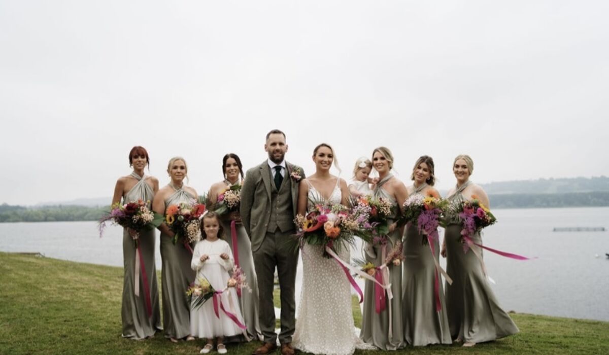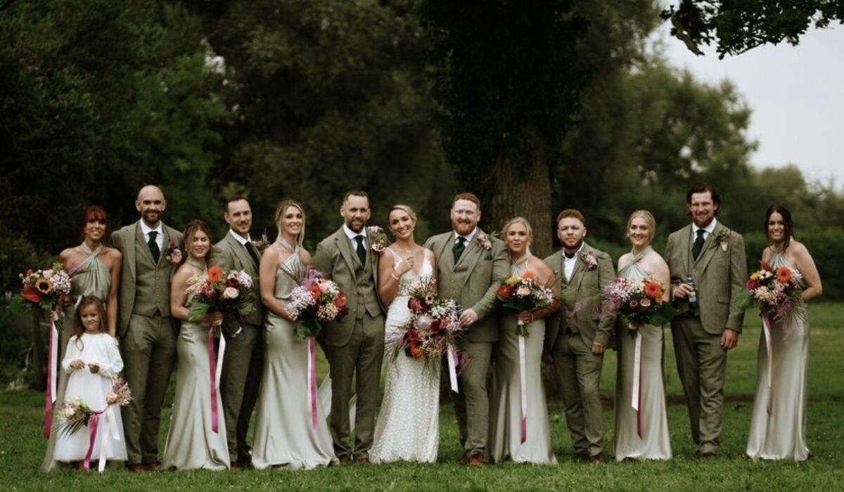 This really was one of my favourite ever bridal bouquets to create it was such a statement and complimented Lois's gorgeous sequin dress just perfectly on the day. We went oversized with the bouquet and just filled it with blooms. It really did have the wow factor. The bridesmaids then had a smaller version which looked lovely with their sage dresses. The trailing pink ribbons on all of the bouquets look so gorgeous in the photographs. The flower girls had brightly coloured dried flower hoops that they can keep. They look beautiful hung on the bedroom wall or door. The buttonholes featuring an anthurium looked so lovely and unique and really stood out on the photographs. Lois also mentioned how the groomsmen even commented on them which doesn't often happen!