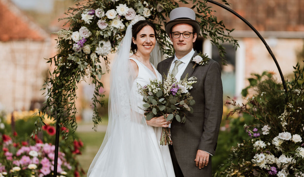 Both the ceremony and the reception took place on the farm. The weather was on their side and they tied the knot in front of a gorgeous flower garden, under our flower arch in the sunshine. They then moved on to the marquee which they had decorated beautifully theirselves.