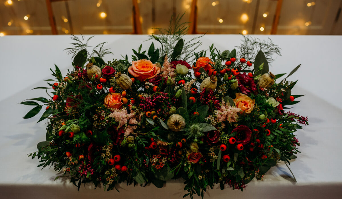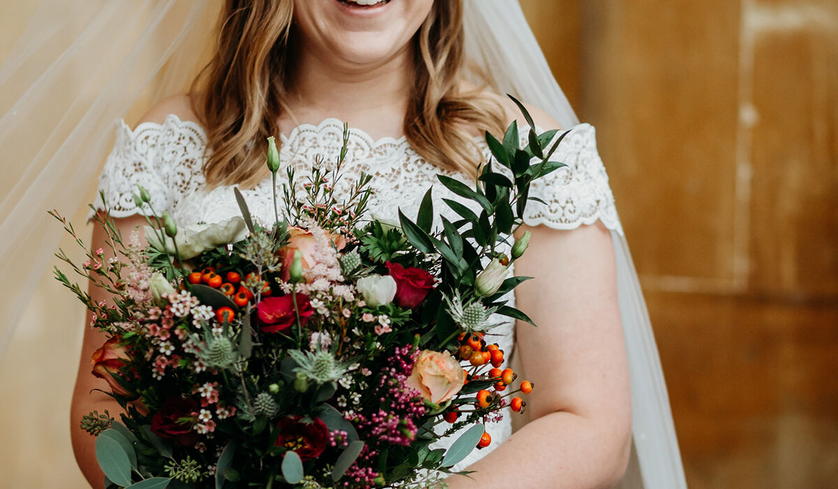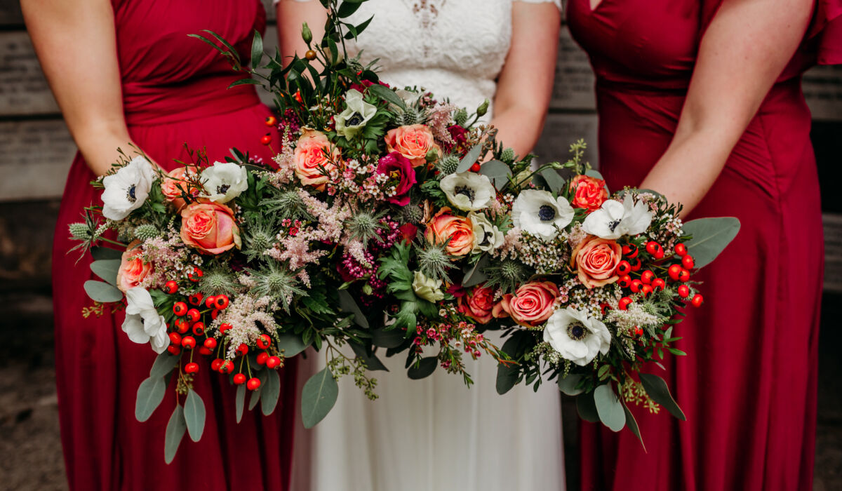 I had been working on the flower collection and in September 2019 we met for our final wedding flower consultation to confirm everything. This is when I introduced Louise to the flowers and colours that would be used for the wedding. I had chosen a gorgeous combination of autumn wedding flowers to include; rose, anemone, ranunculus, protea, berry, thistle, astilbe, lisianthus and wax mixed with seasonal foliage’s such as; pistachio, eucalyptus and ruscus. The colour scheme would be whites, greens, deep pinks, brown and oranges. Louise was more than happy with everything and the next time I would see her was on the morning of her wedding day!