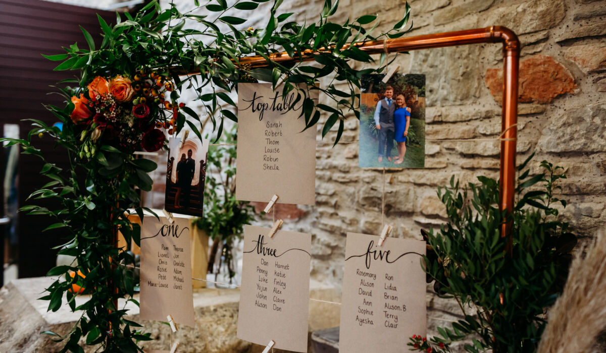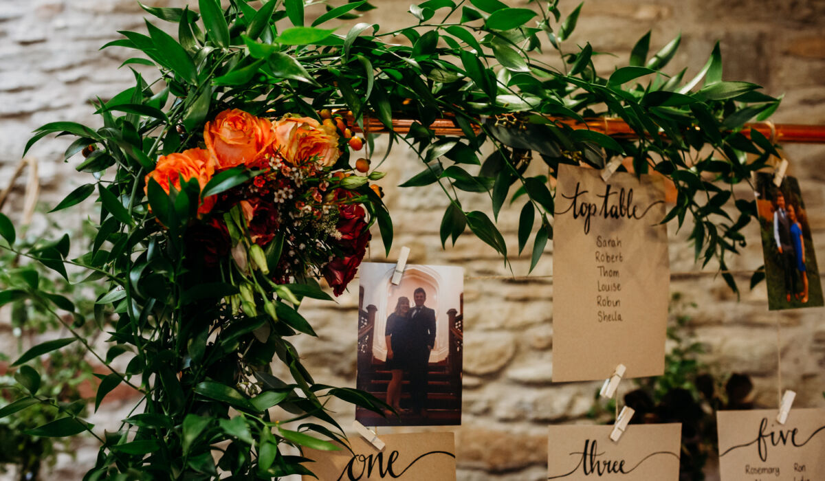 The couple were not having too many flowers with just a bridal bouquet, two bridesmaids’ bouquets, button holes, table plan décor and a long and low display for the ceremony table which would be reused on the top table at the reception. Along with ‘thank you’ bouquets for their mothers.