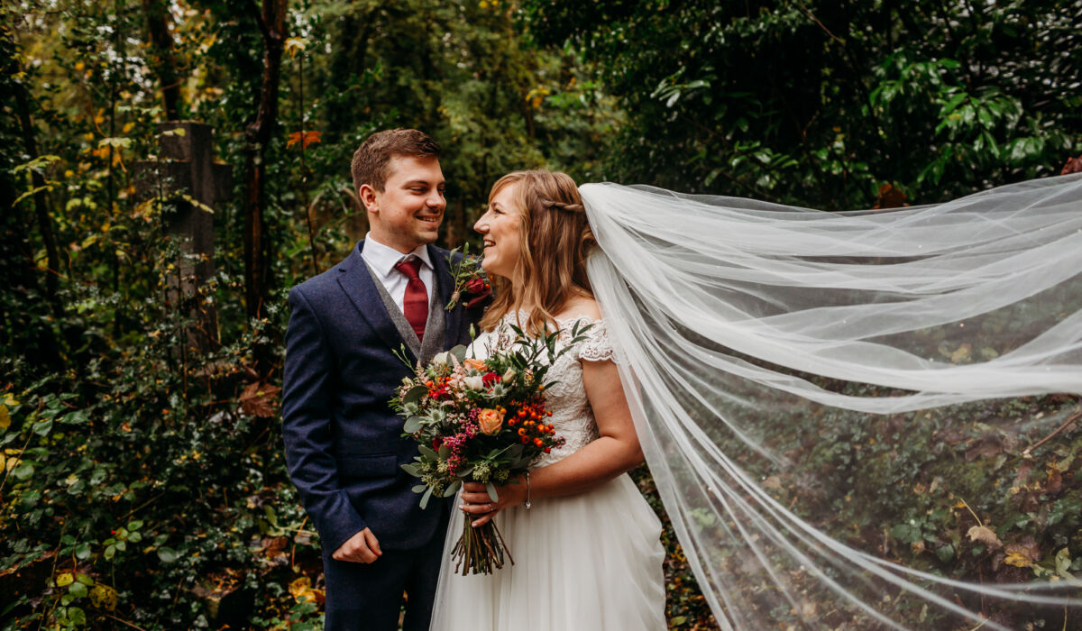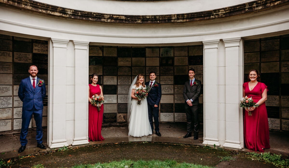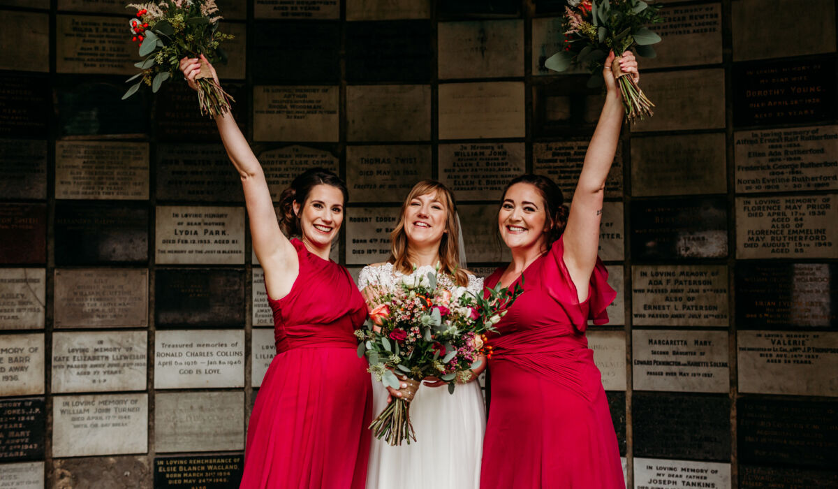 Louise and Thom tied the knot in Bristol on 26thOctober 2019. It was a beautifully autumnal affair filled with seasonal colours and blooms. The couple chose Isabloom Floral Design as their wedding florist for the big day which took place in two great south west wedding venues. The ceremony took place in Arnos Vale Cemetery followed by the reception at a new venue; The Nailsea Tithe Barn. It was one of those days where it rained from start to finish but Louise and Thom really did not let it dampen their spirits.