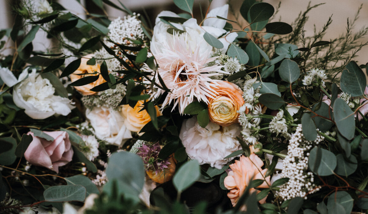 Of course, when wedding planning over a long period of time what you want can change in terms of colours and flower styles as you become exposed to more inspiration. Rosie was pretty happy with her original choices when we finally got around to the final consultation, we just took out some of the mix of colour and went for a more tonal palette of ivories, pinks, peaches, oranges and lots of greenery which was perfect for an early summer wedding in May. It was so nice to hear that Rosie and Jon didn’t want to scale down their flower choices much even though their guest list was more than halved. We adjusted the arrangements to suit the scaled down table arrangements etc. but it meant that the day just looked so blooming beautiful and the flowers were a big part of the wedding day which Rosie had always dreamed of.
