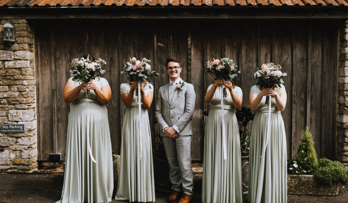 For the bridal party of Rosie and her four bridesmaids we created bouquets in a wonderfully natural and textured shape all slightly oversized. As always Rosie’s bouquet stole the show and the maid’s flowers simply complimented beautifully with a slightly simpler and smaller version. The colour palette couldn’t have gone better with the sage green dresses. This then seamlessly matched the grooms party who wore a lovely sage suit and had button holes to match.