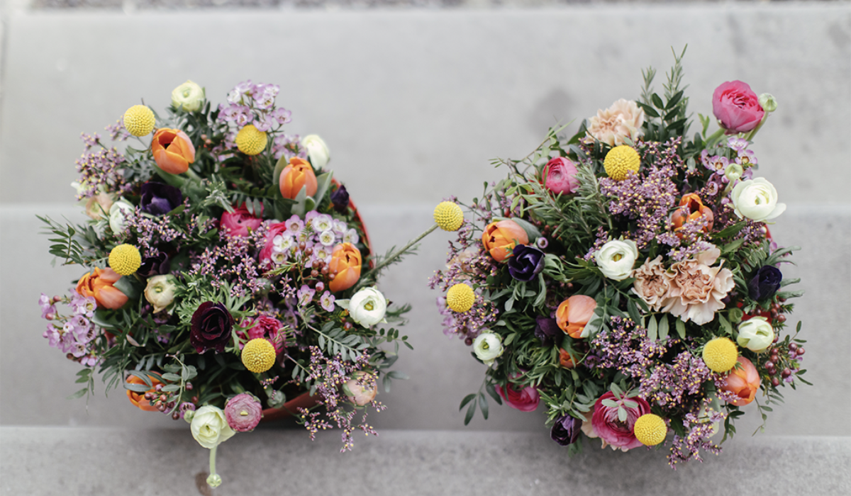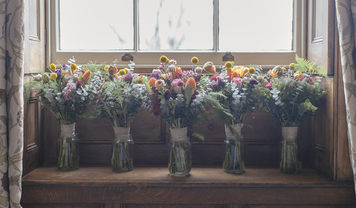 After some thinking time I had another telephone conversation with Victoria and Adam to confirm some things a couple of months later. Final choices wouldn't need to be decided on until January 2020 but they had chose the colours and flowers types. We decided on a gorgeous Spring wedding flower collection of; roses, ranunculus, tulips, craspedia, anemone, clematis mixed with lots of greenery to include fresh herbs. These flowers would be in a mix of colours to include Spring tones with some deeper luxurious splashes; ivory, pinks, yellow, orange, burgundy, red and greens. The flower arrangements would include; bridal bouquet, bridesmaids bouquets, button holes, pew ends which would be put into bottles and decorate cake table, aisle plinth displays which would be moved to reception and large jars for the tables. Victoria really wanted all the flowers to look very natural and unstructured.